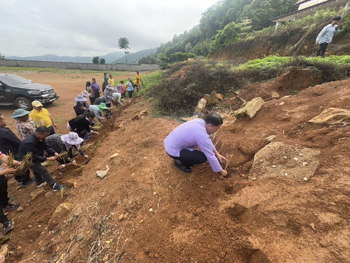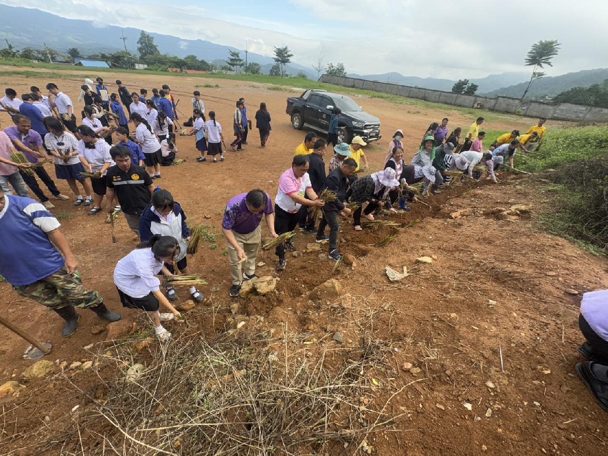 องค์การบริหารส่วนตำบลปอ เข้าร่วมกิจกรรม "วัด ประชา รัฐ สร้างสุข" พร้อมร่วมปลูกหญ้าแฝก เพื่อการพัฒนาที่ยั่งยืน ณ โรงเรียนบ้านห้วยคุ