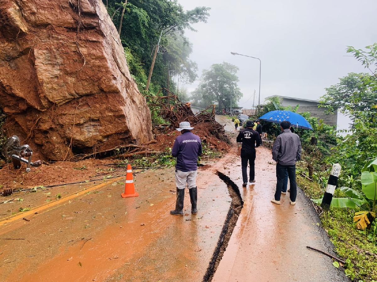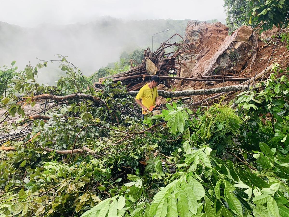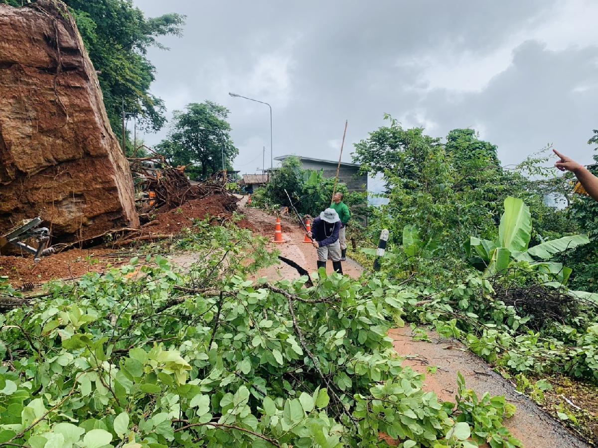 อบต.ปอ ดำเนินการเคลียร์พื้นที่หลังฝนตกหนัก ส่งผลให้ดินถล่มในพื้นที่บ้านร่มฟ้าทอง