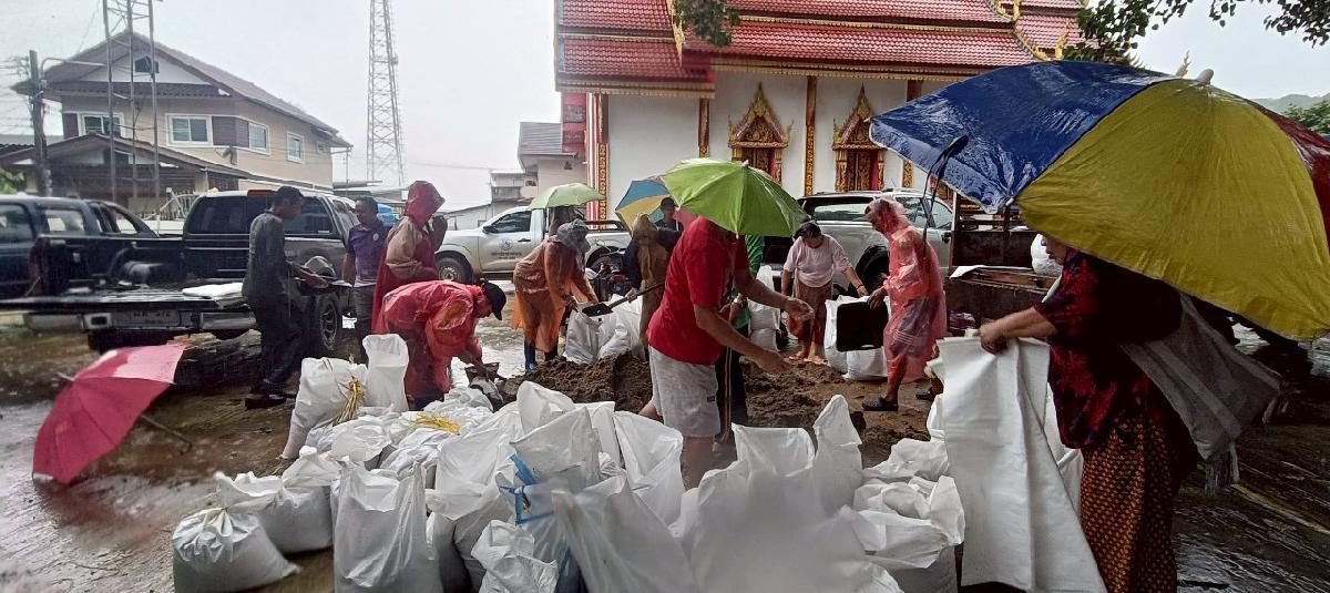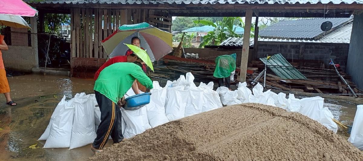 อบต.ปอ โดยงานป้องกันฯ มอบกระสอบทรายช่วยเหลือประชาชน เพื่อเตรียมรับมือน้ำท่วม