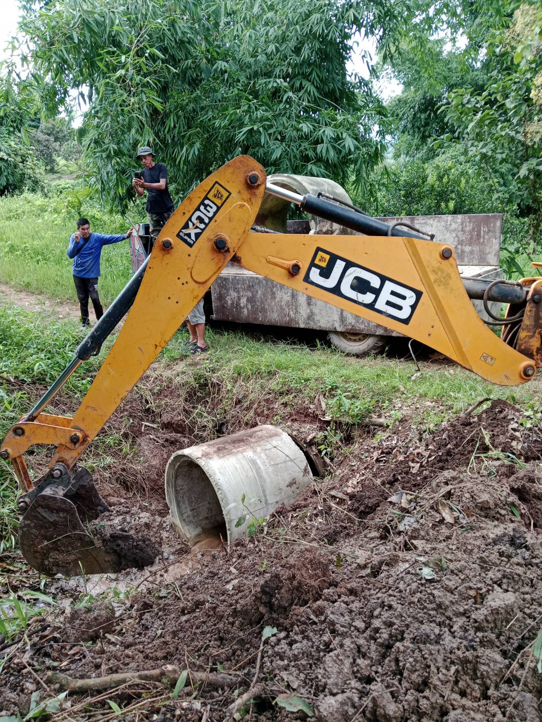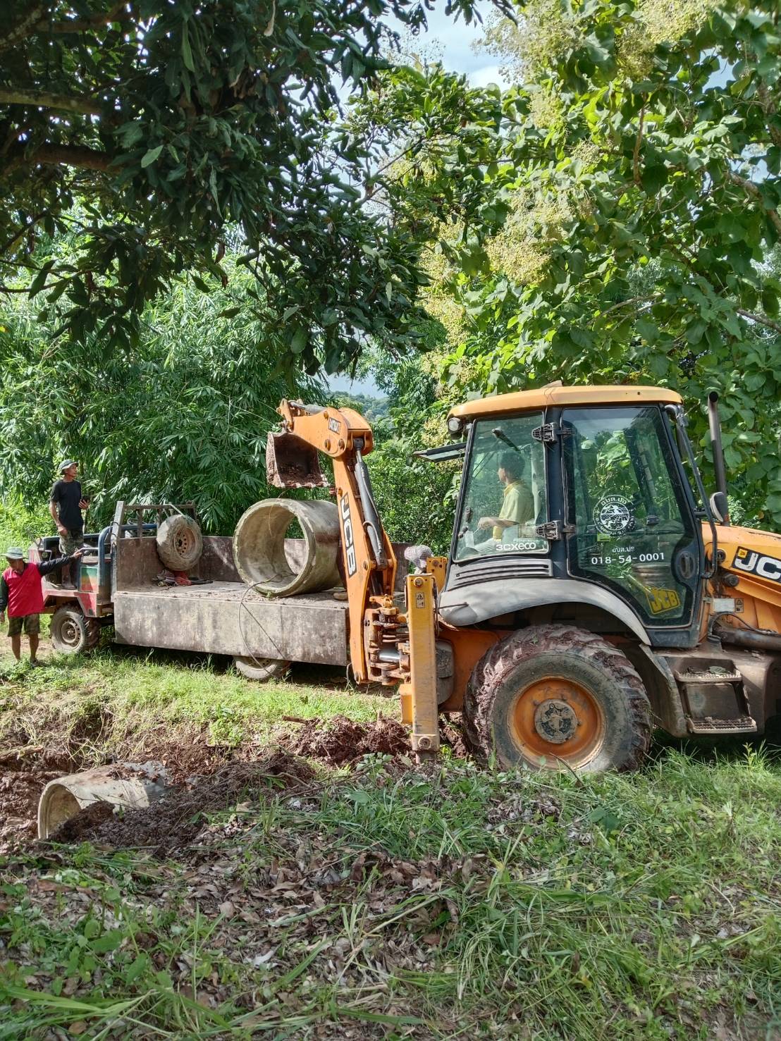 กองช่าง องค์การบริหารส่วนตำบลปอ นำรถหน้าตักหลังขุด รถไถ และรถดั้มหกล้อ ลงพื้นที่บ้านปางหัดและบ้านพิทักษ์คีรี หมู่ที่ 2 เพื่อดำเนินการขนดินถมคอท่อถนนเข้าสู่การเกษตร